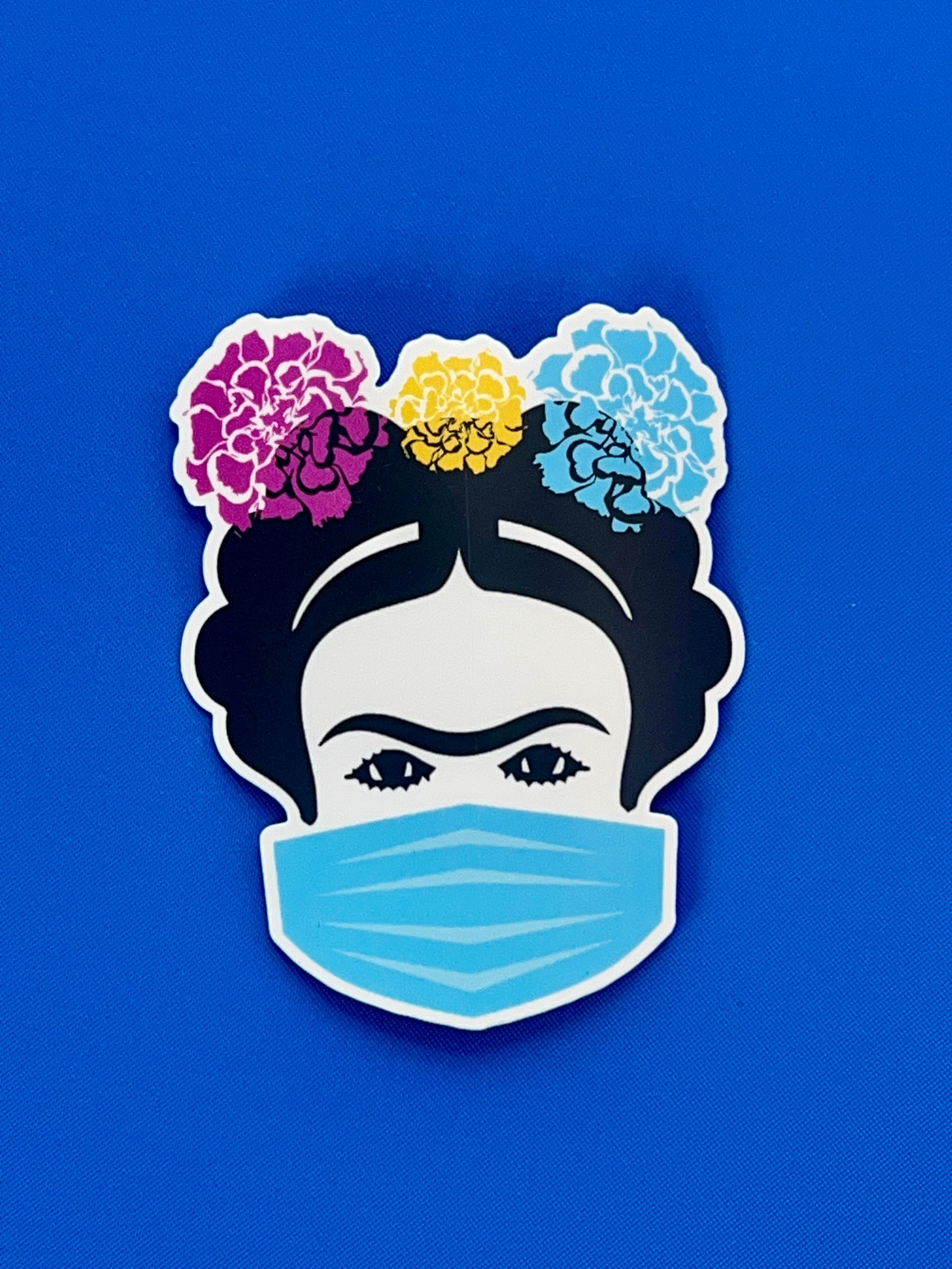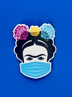 3" x 3" Frida Kahlo Wearing Mask Sticker: Latina Artist Vinyl Water Resistant Decal