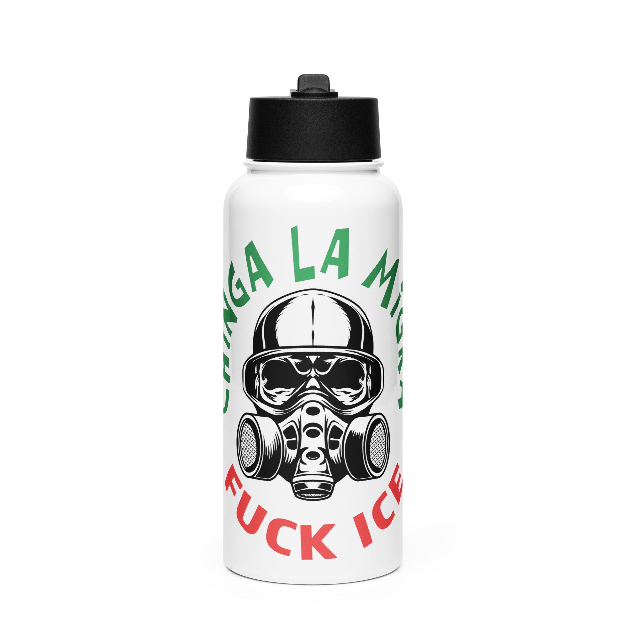 Chinga La Migra, FUCK ICE, Stainless steel water bottle with a straw lid
