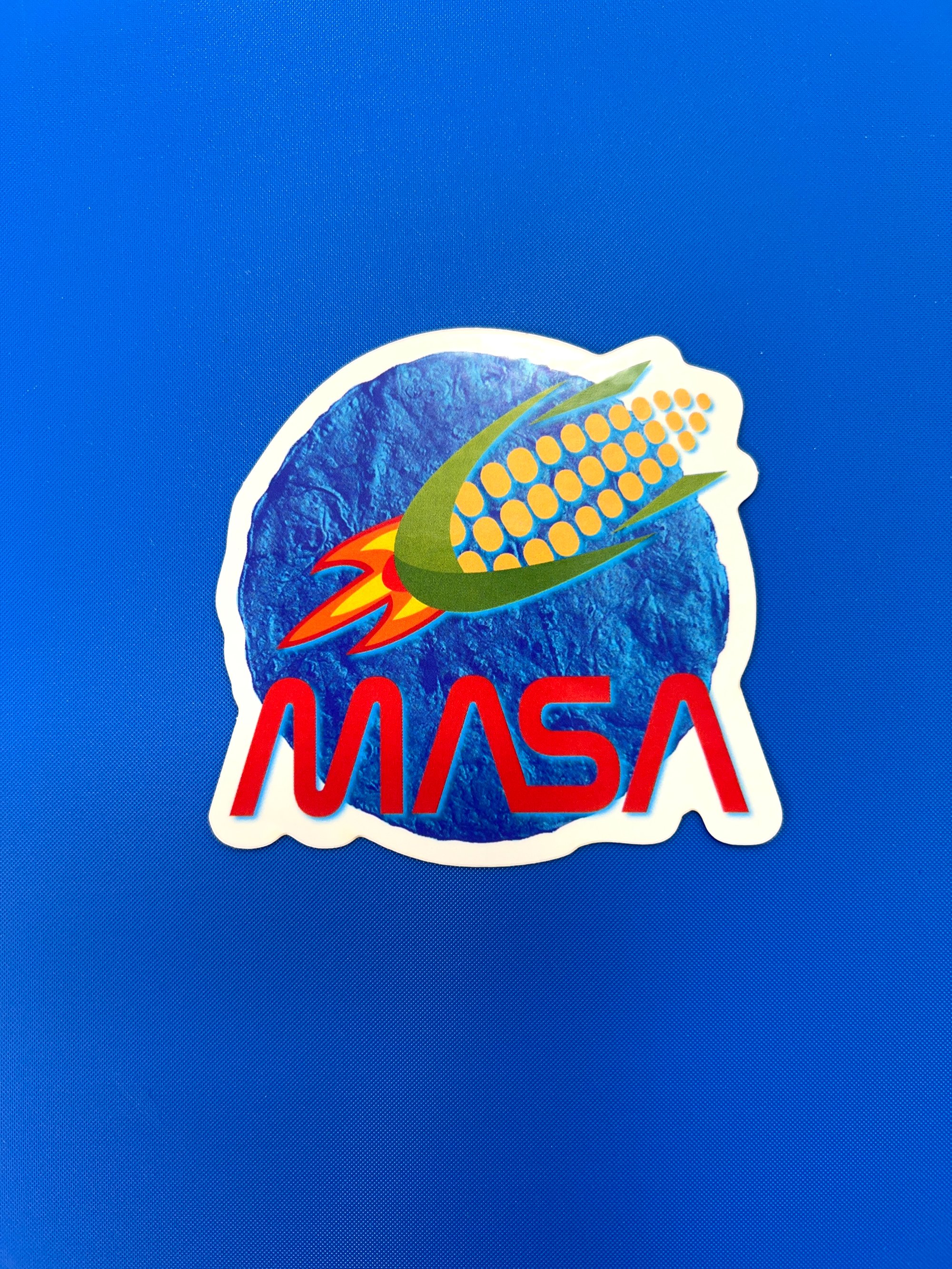 MASA Cornship Sticker, Mexican Space Travel, Funny Large 3" water bottle, laptop, bumper sticker