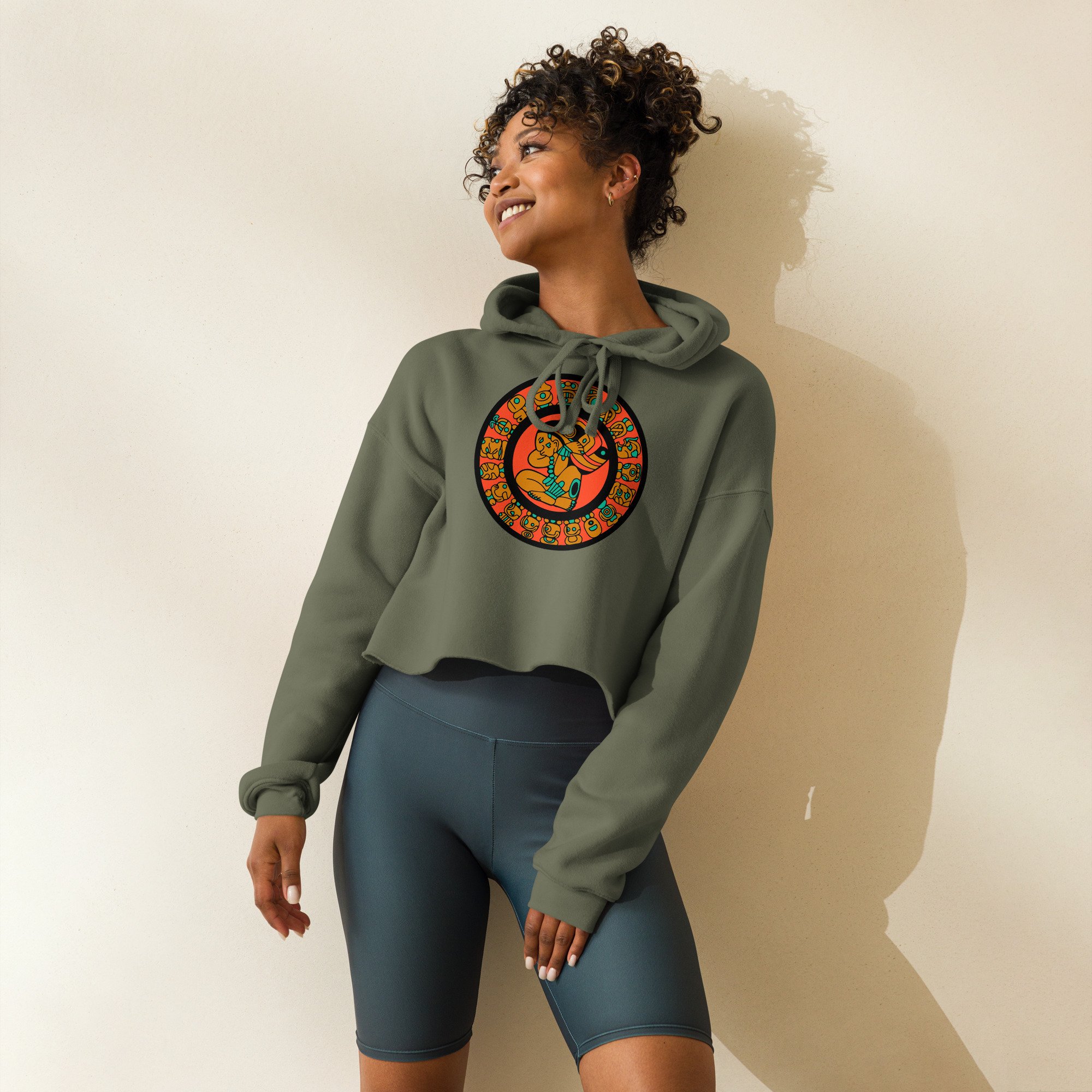 Mayan Calendar, Mayan Wheel of Time, Crop Hoodie