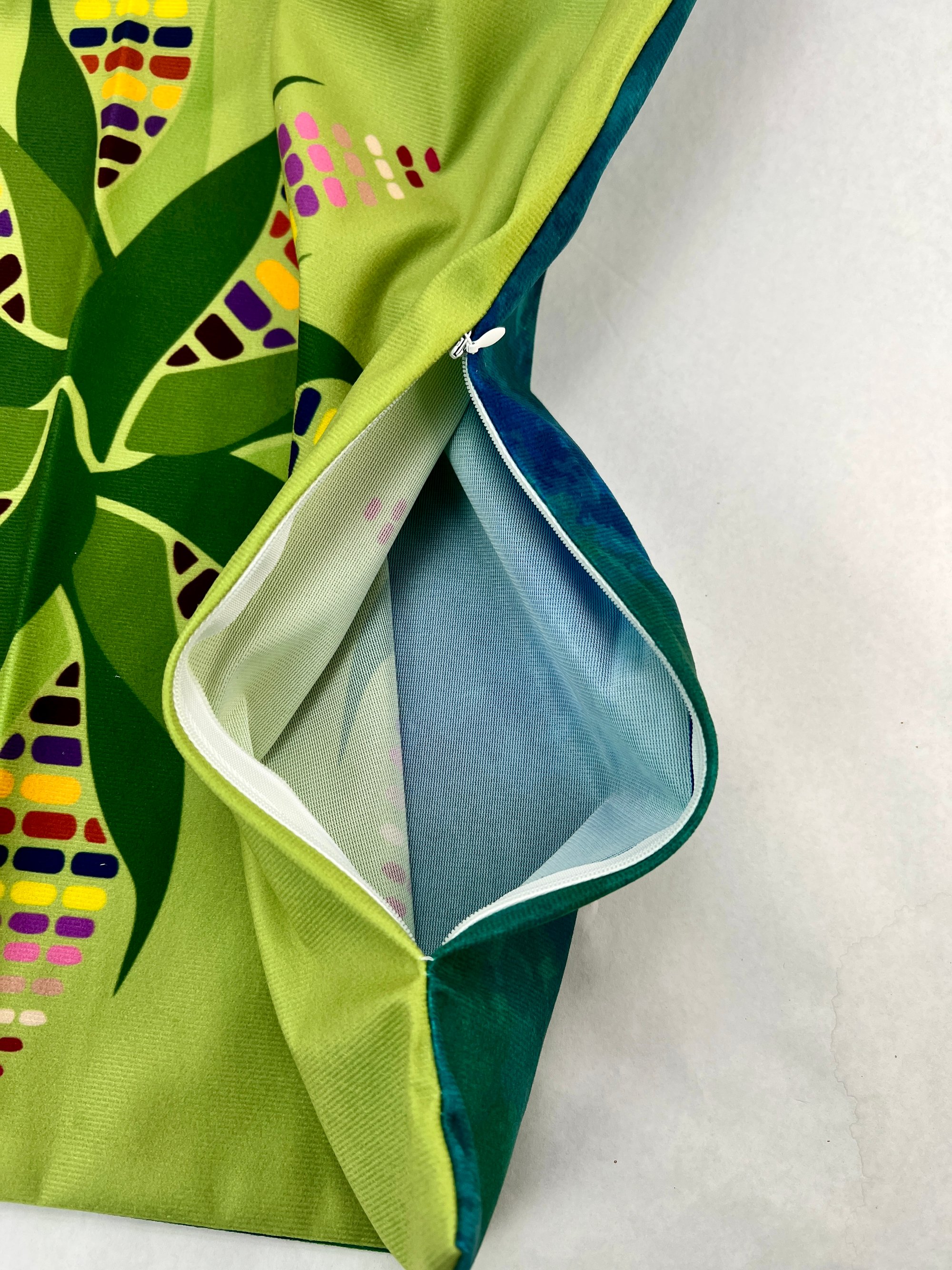 Experience the mesmerizing allure of our Sacred Corn Mandala pillow. Inspired by the significance of corn as a "Sacred Element of Life," this pillow encapsulates the essence of Meso American traditions in its vibrant color diversity, with a soft touch feel. On a couch or a garden bench, this pillow elevates your environment with its rich cultural beauty. Effortlessly stuff it with a shape-retaining insert to transform it into a plush, inviting decor piece in under sixty seconds, with a recommended size of 18 x 18 inches. Transform your space into a serene sanctuary where relaxation dances harmoniously with vibrant color and tradition. This enchanting piece is more than just a decorative addition; it's a heartfelt celebration of the soulful rhythm echoing from centuries-old practices.